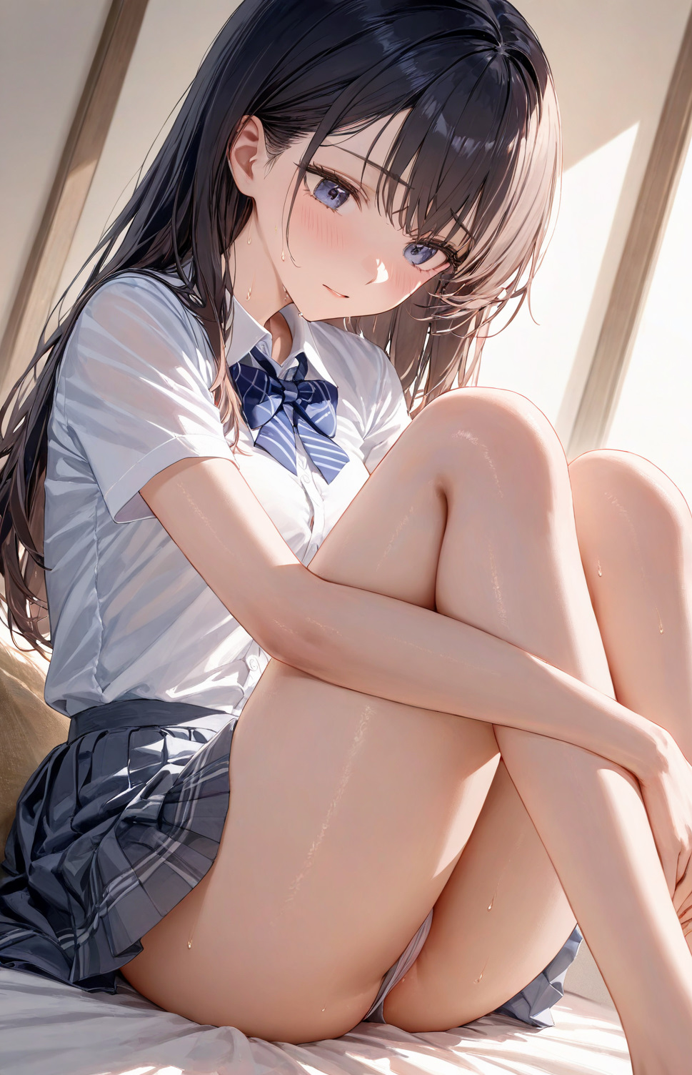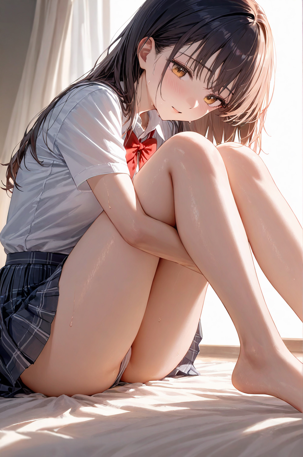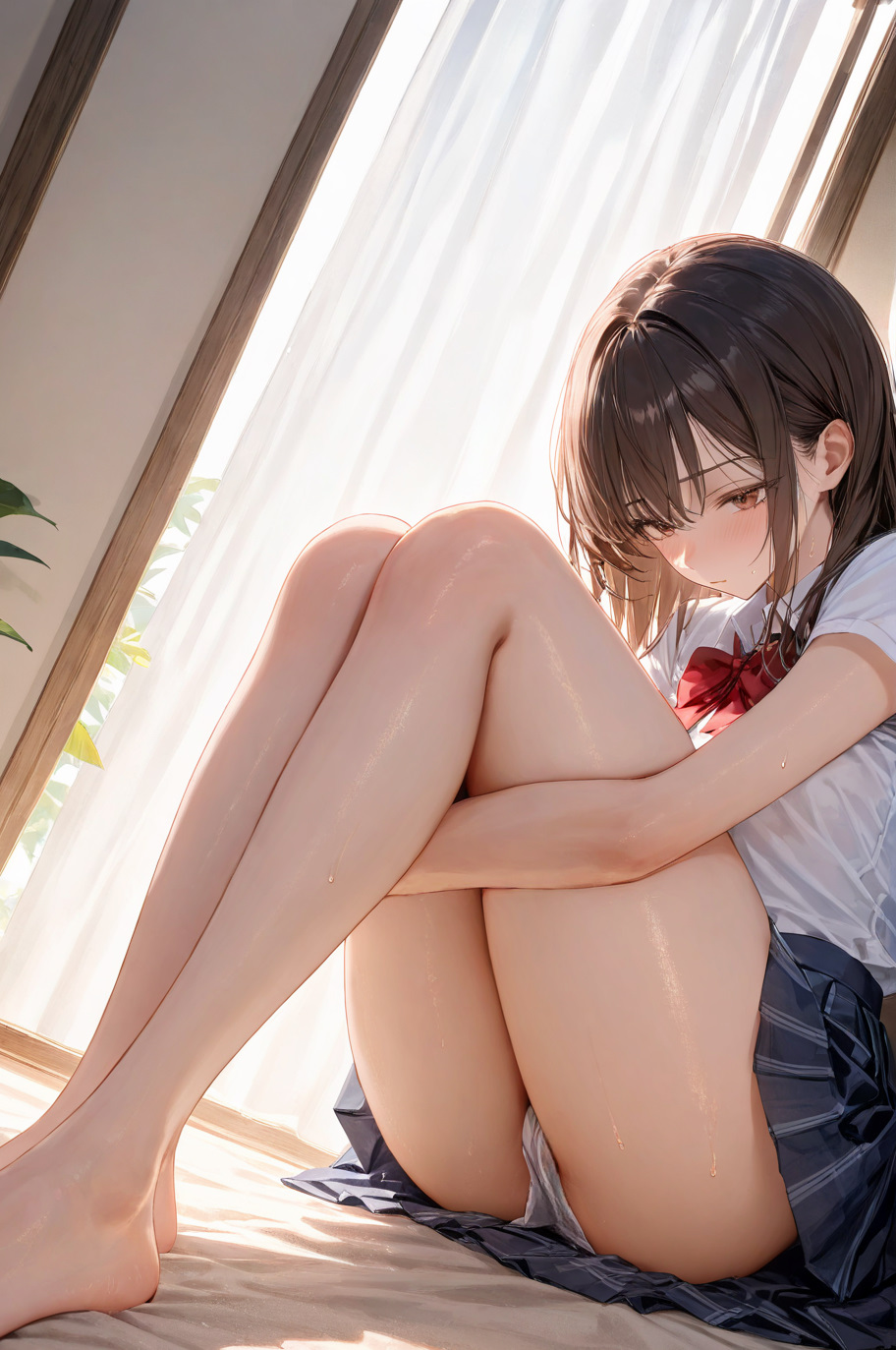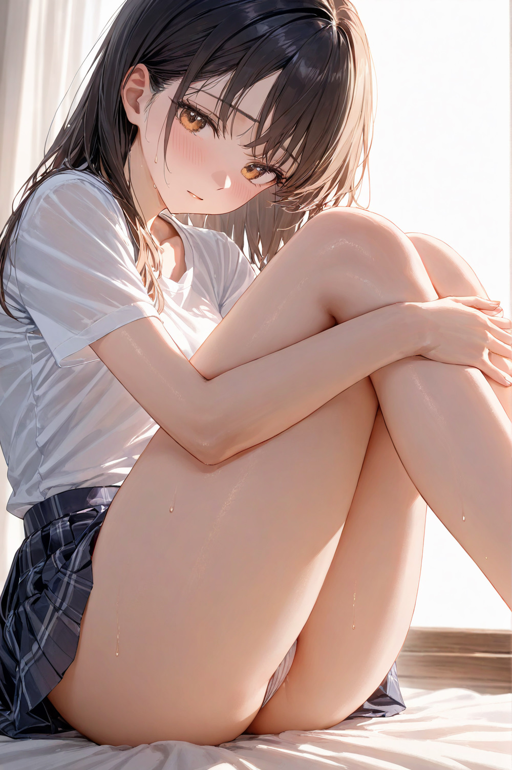 体育座りの密着太ももとスカートのシワ、それだけで世界が止まった。