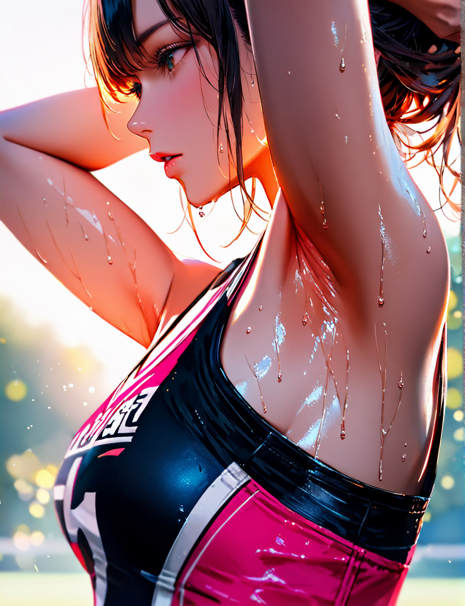 腋汗にドキッとしたこと、あるでしょ? ユニフォームが肌に貼りついて、色が濃くなってる。走り終わった直後、肩で息をしてる彼女の腋の下に、汗がしっかり浮いてる。乾きかけたところ、まだ流れてるところ、汗染みの濃淡。全部が“動きの名残り”みたいで、妙に色っぽい。 競技に集中してるからこそ、こっちは勝手にドキッとしてるだけなんだけど。手を上げたとき、腕を回したとき、動きのたびにチラ見えする腋の汗、もう反則だろってぐらいリアルすぎて、目が離せない。 本人は、ただがんばってるだけ。でもこっち... -